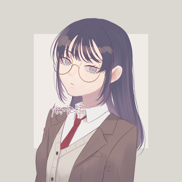 黒髪ロング/伊達メガネ(本来は丸タイプではなく四角タイプ)