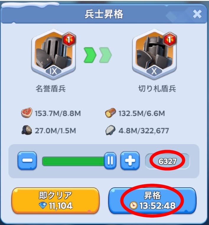 昇格の方がより多く最上位の兵士を得られる(総力が上がりやすい)