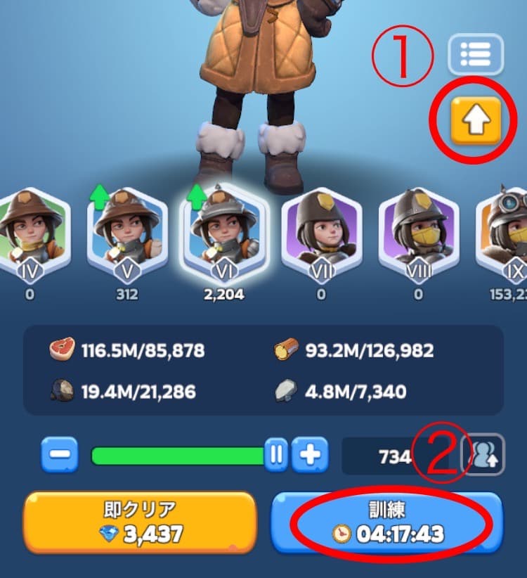 またはレベルの低い兵士(troops)を昇格していく