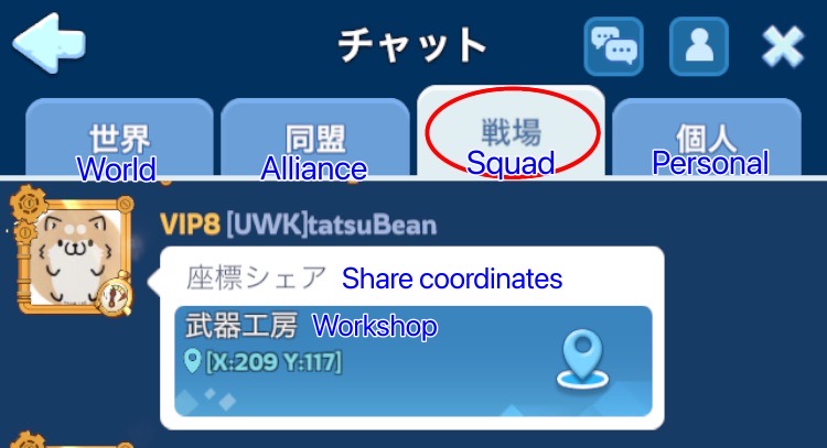 「戦場(squad)チャット」というイベント専用チャットを確認しましょう。