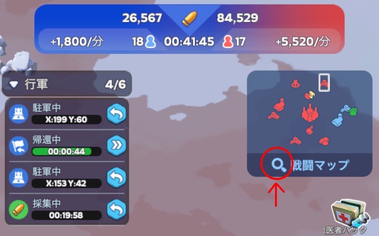 ステーション(Facility)や砦(Fortress)の戦闘の時のように回復しながら増援を送りましょう。