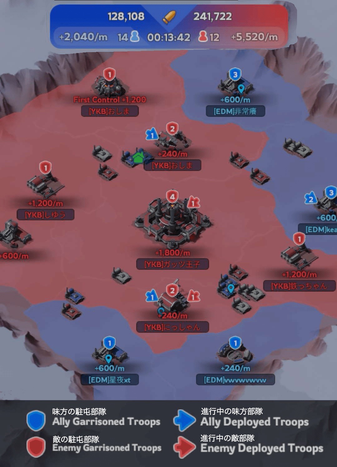 同盟ポイントが溜まっている施設を奪う(または奪われる)と、溜まっているポイントが全て散らばります。急いで回収しましょう。(ポイントは施設の周りに複数個所散らばります)