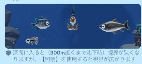(Visibility decreases as depth reaches 300m. Use [Lantern] to expand your view.)