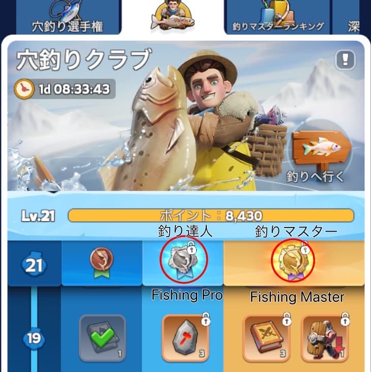 課金をするなら「釣り達人(fishing pro)」「釣りマスター」は最初に買いましょう。購入後から魚を釣った際のポイントにボーナスがつくようになります。