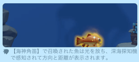 選択した魚を必ず出現させる。ただし出現する水深は魚によって異なる。釣り糸レベルを上げる前に使用しないよう注意。指定した魚に限り、深海探知機の効果が発揮。