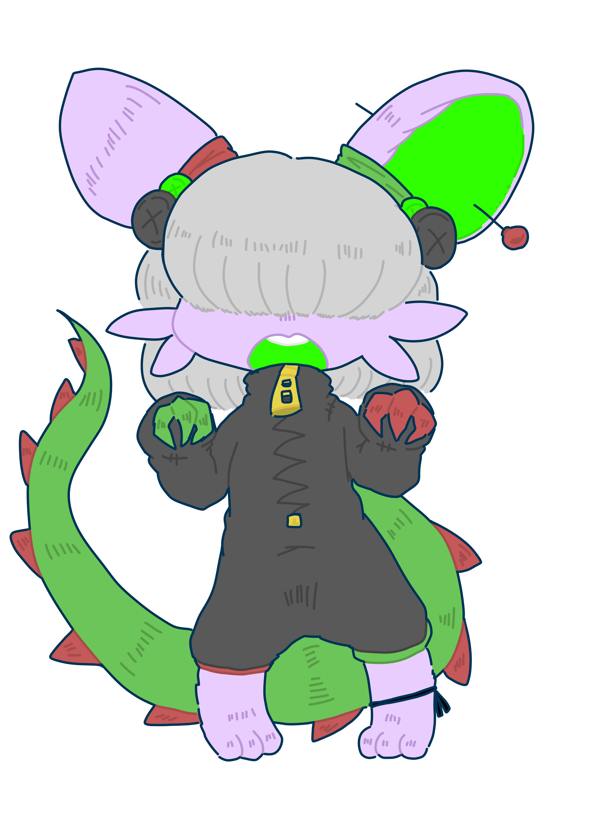三白眼と角を見られると恥ずかしがるため、本人の意思で前髪を切らずに伸ばし続けているらしい。