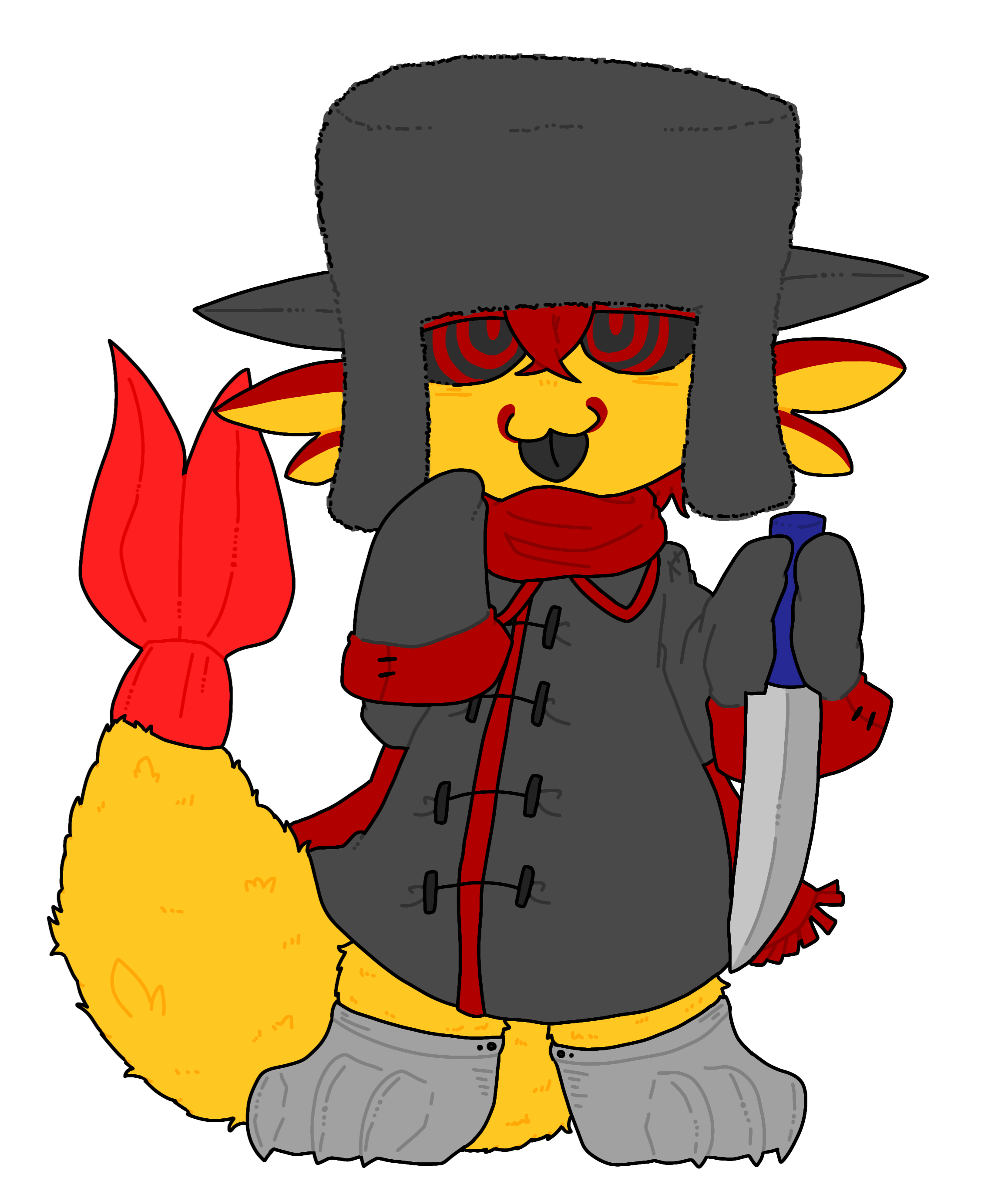 「寒がりなんだ、せめてウシャンカとマフラーだけでもさせろよ。……ウシャンカを知らないのか? この帽子のことだ」