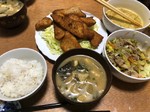 お味噌汁は昨日のお味噌汁に玉ねぎと椎茸、大根を入れました。
