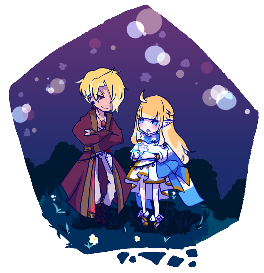 ベリトが木々の間から見える夜空を見上げながら歩くと、ユノも見上げて星が綺麗だよねぇとうんうん頷く。ベリトの胸ほどしか身長のないユノが上を向くとラピスラズリのような深い青色の瞳と目が合い、星明かりでキラキラしていた。