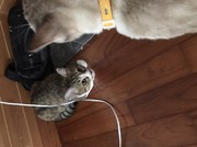 他の猫ちゃんを触っていると、必ずぼくも触っていうように近づいてきます。