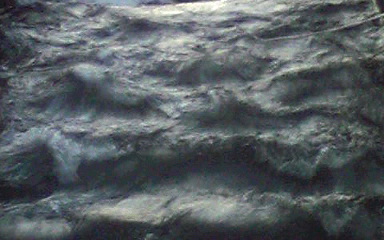 勢いよく流れる水の中に何か、両目と鼻、そして大きく開いた口らしき獣の顔、或いは狛犬らしき顔が見えないだろうか?