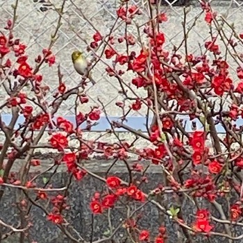 撮れたのは一羽だけど、囀りながら仲良く梅や木瓜の木を飛び回ってたよ。