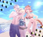 実はあの六人の水着姿、丁度五年前にはもう決めて描き上げていたと思うのですが……あいにく手元に当時の資料がなく……男子組の水着はフォルムでなんとなく記憶してるけど、女子組はこだわり過ぎてて覚えておらず、急きょデザインし直しました。一応、個々が好みそうなデザインを選んであったりします。