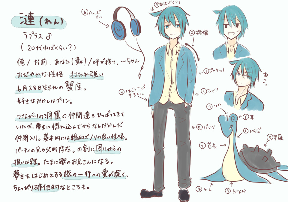洞窟内で兄貴分として慕われていたせいか、優しく面倒見の良い性格。仲間に対する愛がとても深い。だけど周りからの扱いが雑。洞窟でのことのせいで人間をかなり嫌っていたが、ヒナリや彼方との出会いと旅を通して、少しずつ変わりつつある。それでもどこか保守的な性格が治らない。ポケモンに対しては比較的寛容。