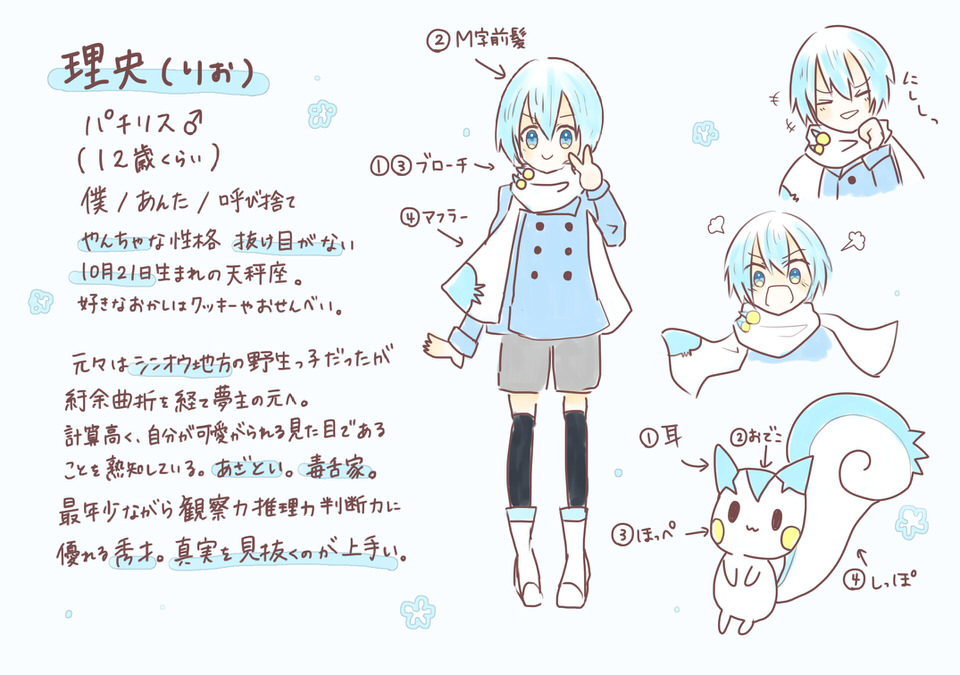 コガネシティで前トレーナーの元から脱走中にヒナリ達と出会った可愛らしい少年。トレードマークは真っ白のマフラー。