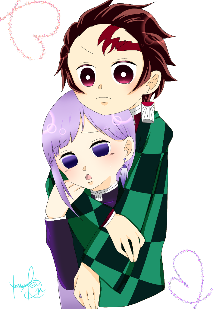 炭治郎が後ろから抱き付いている姿