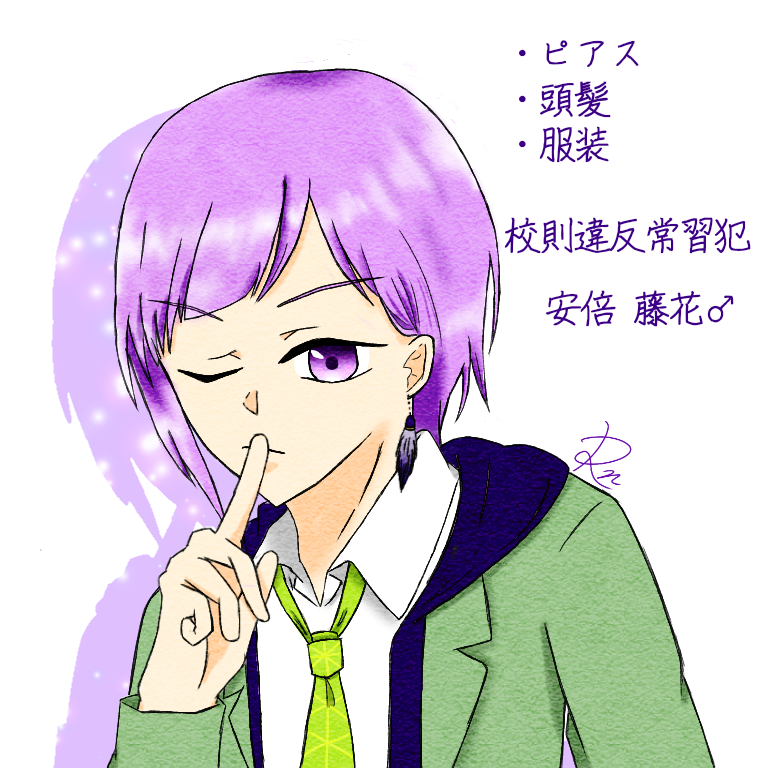 元々男装してる子なので、現パロにしようと描いてみたら、見事に校則違反だらけでした(笑)
