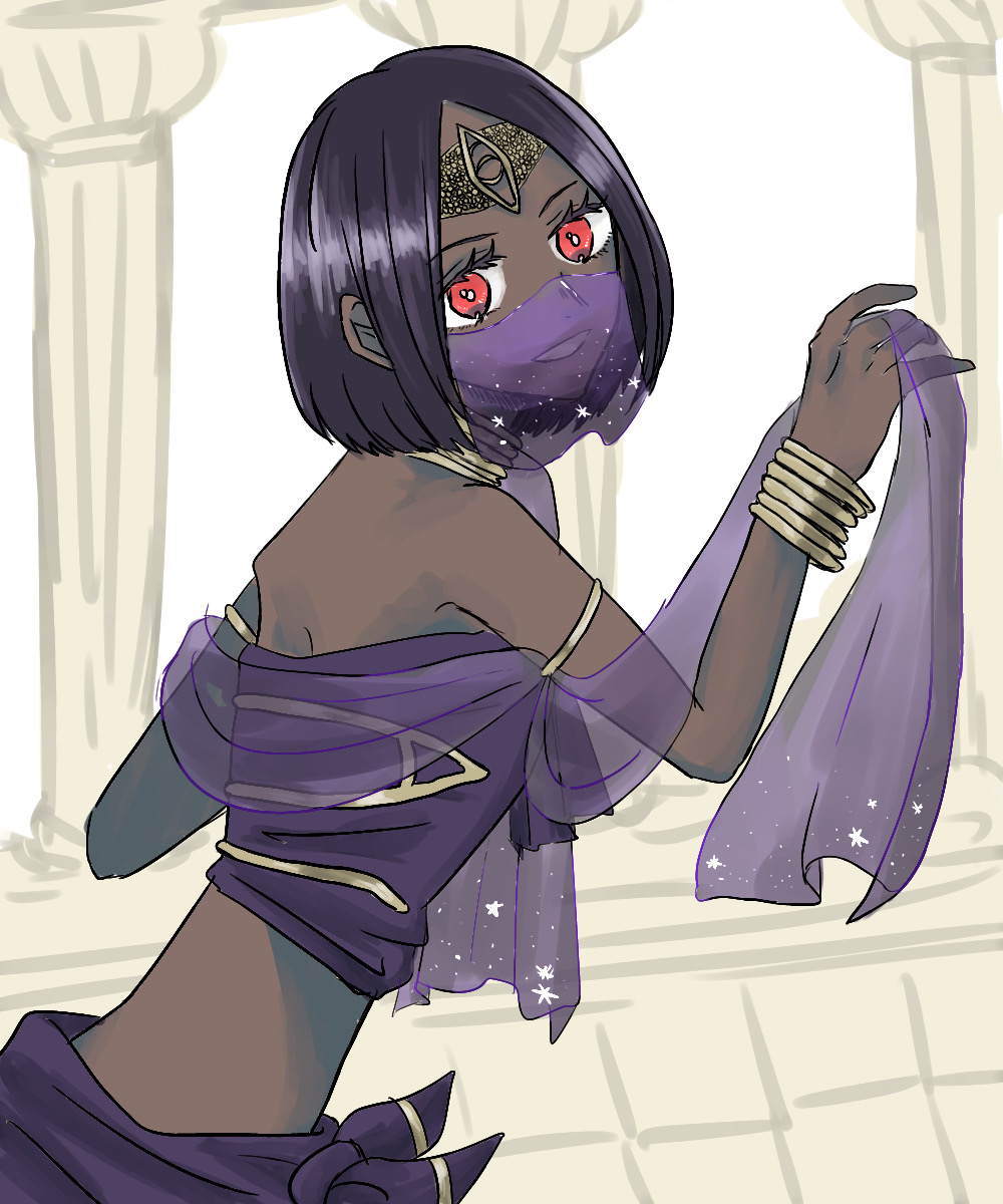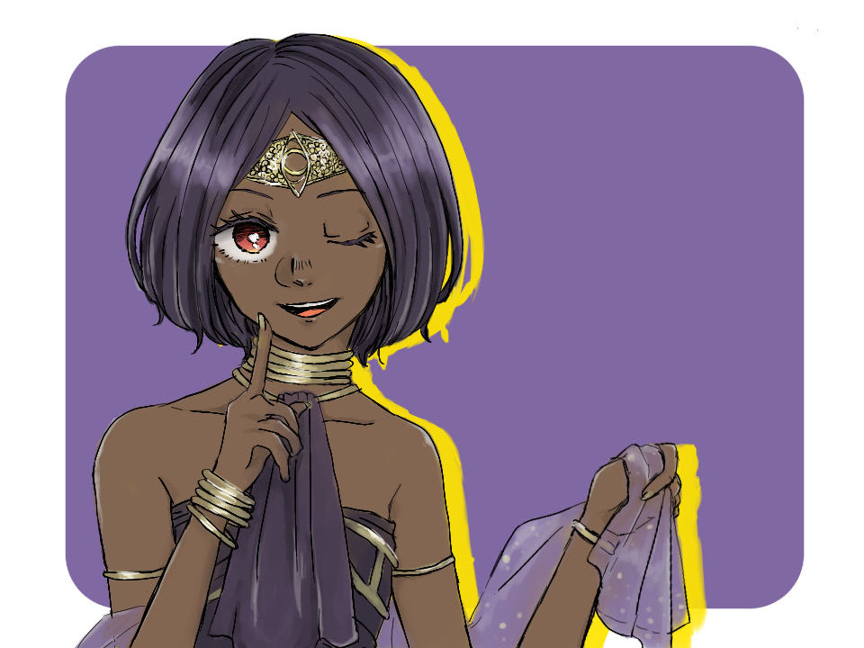 踊りも月の女神もある程度は好きだが、それ以上に兄のアサムダを大事に思っているため、ある日の夜中にアサムダが熱を出しうなされている際も自分は仕事を休めず会いに行けたのが日の昇る前だった事から神殿や賢者に対し不信感を持っている。
