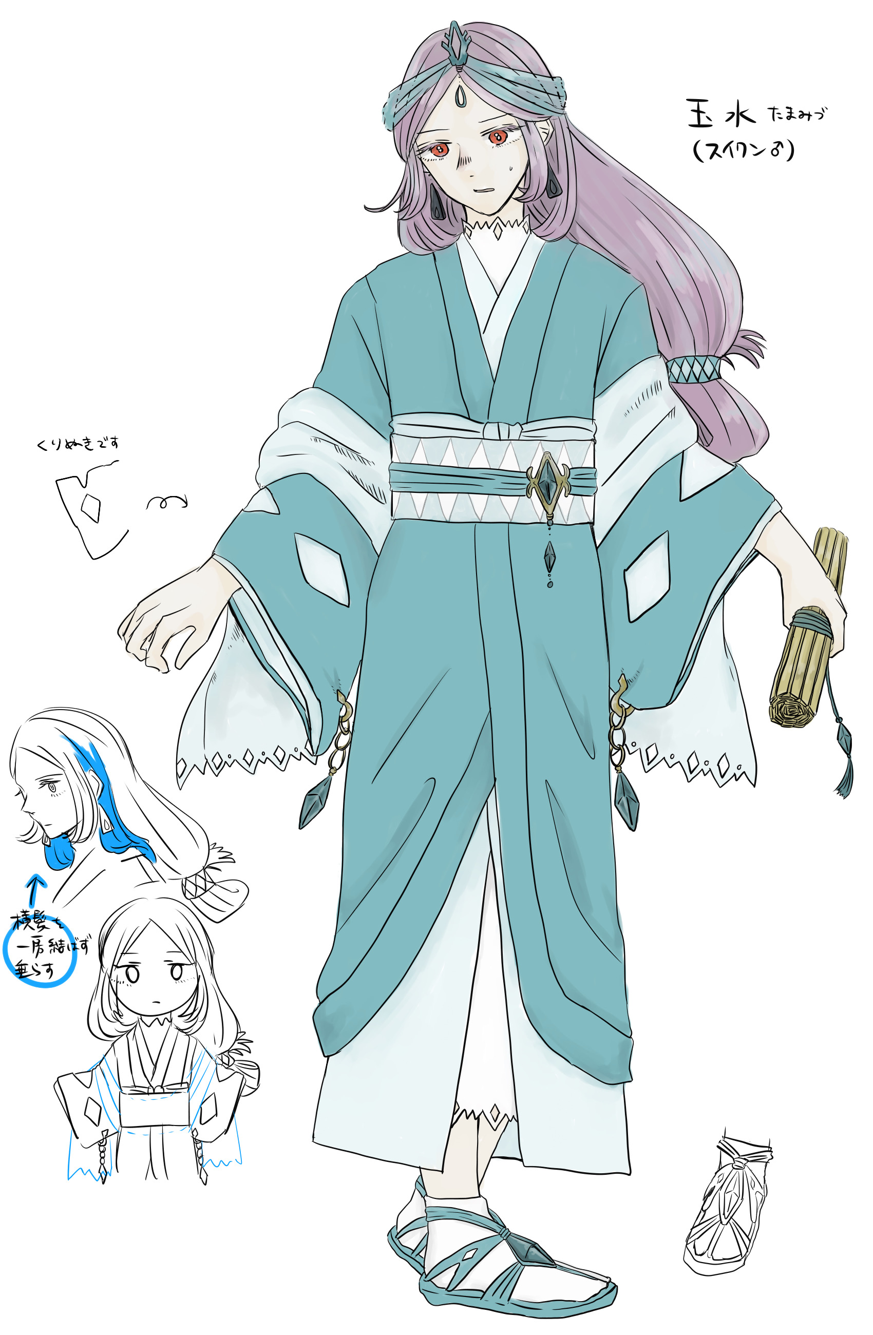 女性のような容姿とたおやかな仕草をするが、かなり冷たい物言いをする。それでも宮廷侍女の中には玉水ファンがたくさんいる様子。こっそり「玉水の君」とか「水の君」とか呼ばれているとかいないとか。