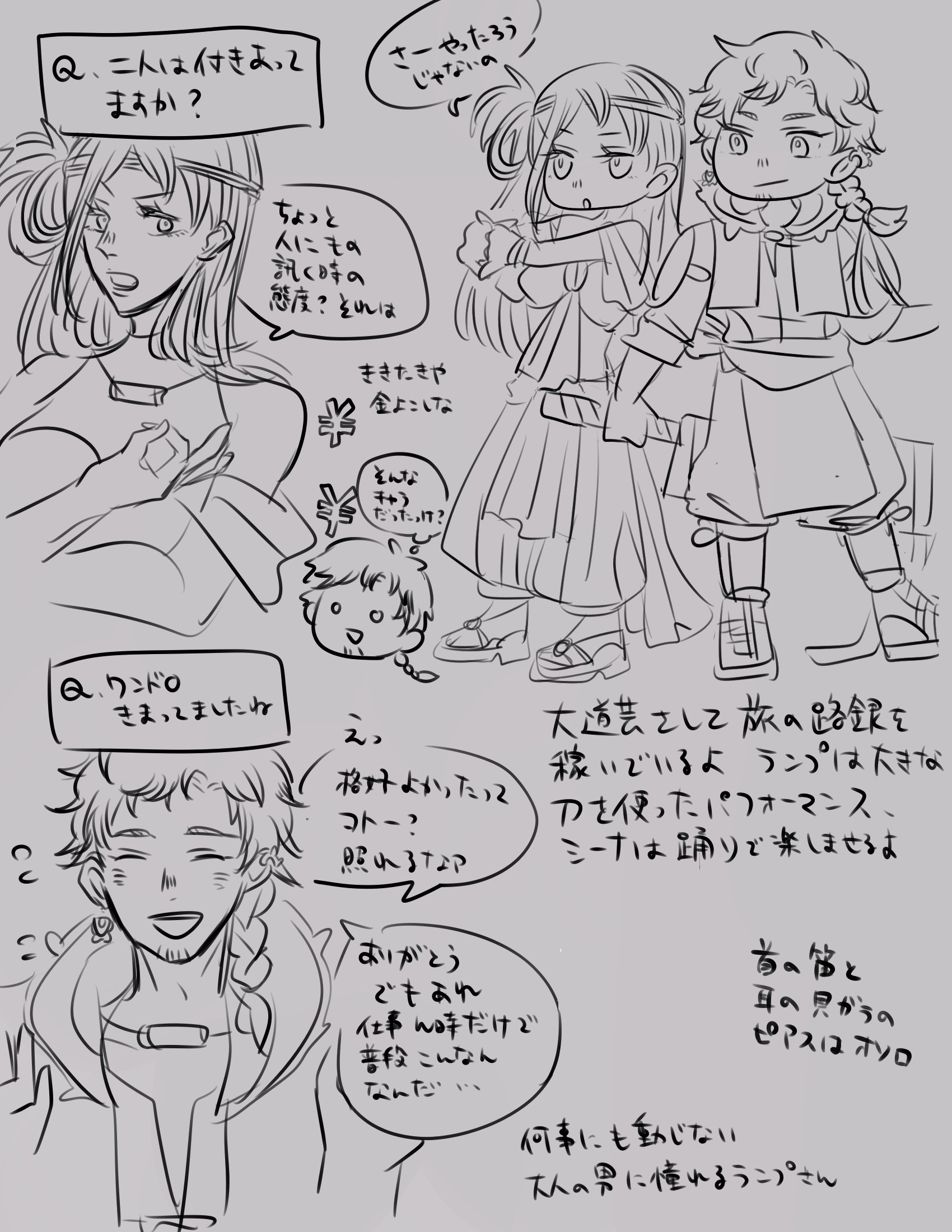 村は比較的好きで、ずっとそこで暮らすのだと思っていたが、15、6歳の頃シーナが村の掟により決められた相手と結婚させられたのに憤り二人で村から飛び出した。その事をランプはちっとも後悔していない。寧ろ優柔不断な自分が最良の選択をしたと誇りに思っている。