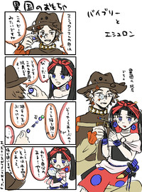 村を出たことがないエシュロンは全てのものに目を輝かせクエルクスとの出会いに感謝している。靴を履いたことがないエシュロンに靴をくれたのもクエルクス。とても気に入っている。