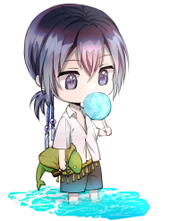 以下は仕事で疲れ切ってた私が自分を癒す為に描いたものです。シユウのリゾートウェア姿はこんな感じでした(実際はトンベリ持ってませんがトンベリ姿の時はこんな風なんだなの参考に)