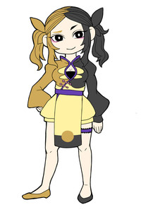 夜は黒髪をサイドで一つで結び、昼はクリーム色と黒の髪を両サイドでそれぞれ一つずつに結んでいる。