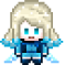 雪のように白い肌、海のような青い瞳、毛先が水色がかったふんわりとしたプラチナブロンドの髪を持つ。