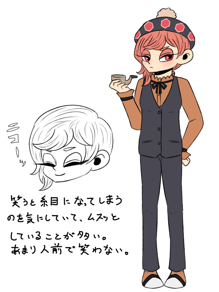 意地っ張りで、とても几帳面。引きこもりに近い生活を送っているが、ゴミ出しはきちんと行っており、部屋は明るくて綺麗。そんな部屋とは吊り合わないパイプを吸っている。
