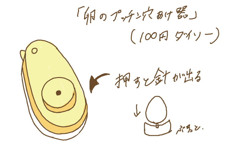 これは茹でる前の卵のお尻に穴をあけて、空気と水の力で殻を剥きやすくする装置です。
