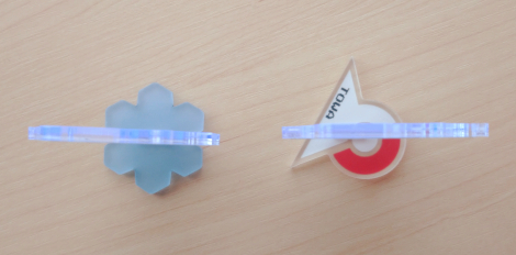 無印はキャッチコピーの「スノーライト☆すまいる」入れてグロスでセッカジムバッジ、2は名前入れた〜〜〜!