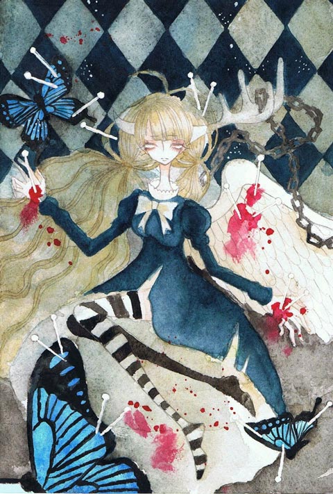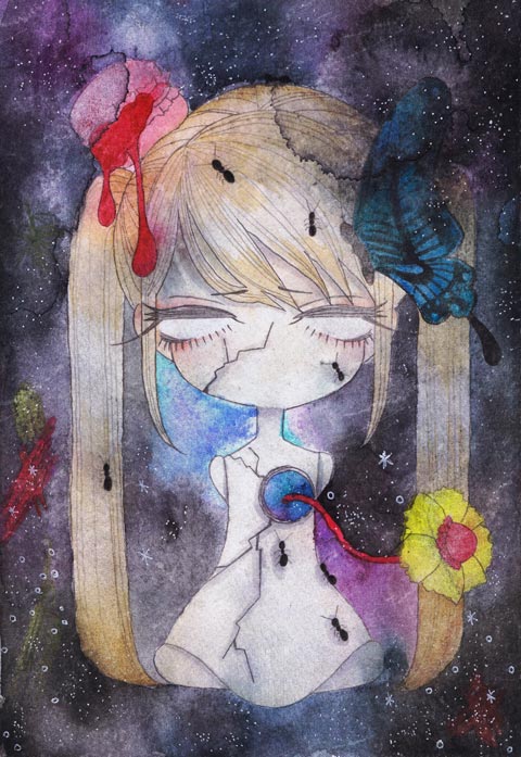 わたしが感じてきた痛み苦しみ切なさ悔しさ悲しさなどを絵の中に散りばめさせたいと思っております。