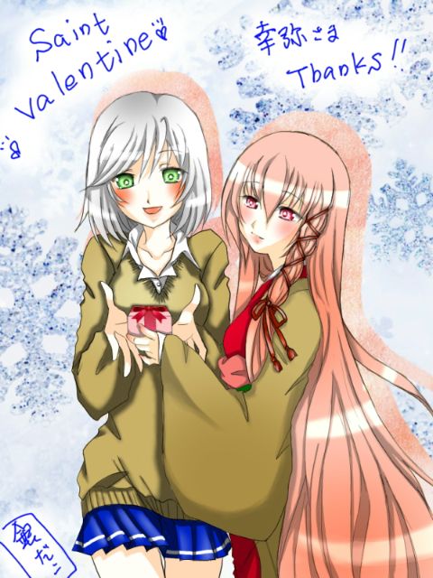 [バレンタイン企画]に参加していただきました幸弥さまへ。 幸弥さま宅の夢主ちゃんと、我が家の湊でコラボレーション!! 手渡しているのは、湊の手作りでしょうか?それとも大家の御用達品? 友チョコをテーマに描いてみました。 私もやったことありますが、楽しかった記憶があります。 夢主ちゃんと湊がいつまでも仲良しだといいなあという、私の妄想です。 幸弥さま、企画にご参加ありがとうございました!! [幸弥さまのみ持ち帰り可です]