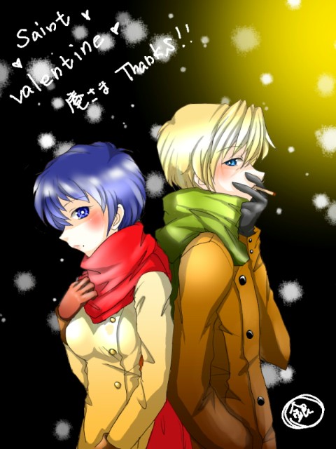 バレンタイン企画に参加していただいた、庵さまへ。 なんと、マルロニにチョコを!! 良かったね!マルロニ!!と、いう訳で、庵さまのお子様、未央さんとのツーショットをば。 二人とも大人ということで、少しシックにしてみました。 庵さま、ご参加いただきありがとうございました!! [庵さまのみお持ち帰り可です]