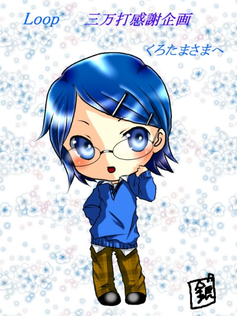 二枚目は @磯崎青くんをミニマムで。 秋斗くんとは違い、爽やかでキリッとしたイメージだったので、目を釣り気味にぱっちりさせてみました。 ポーズは少しナルシストっぽく……と頑張りましたが、デフォルメなのでなんだか微妙な感じに。 もっと捻るべきだった……かな?;; くろたまさま、こんな青くんで宜しければ、どうぞお持ち帰りください。 今回は企画にご参加いただき、ありがとうございました!!