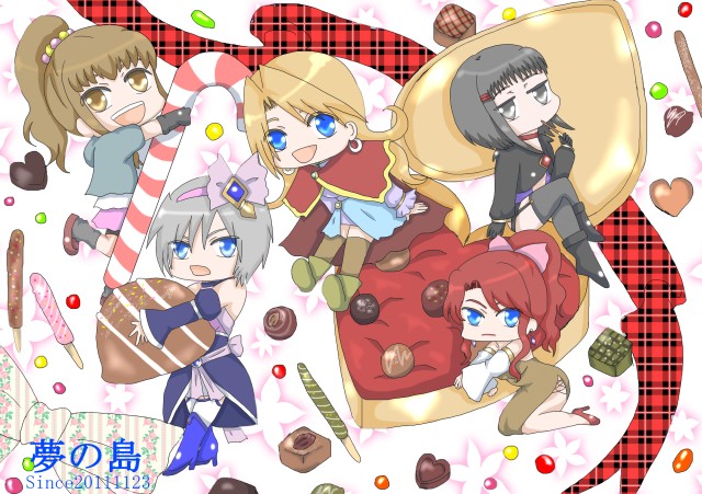 まぁさま宅よりバレンタインフリイラをいただきましたよ!こちらも二月中に…(以下略)でして、今になってしまいました。 ヒロイン達のチョコ(ハート)は私がすべていただいた!! まぁさま、掲載遅れましてすみませんでした。そして、可愛らしく華やかなイラストをありがとうございました!!
