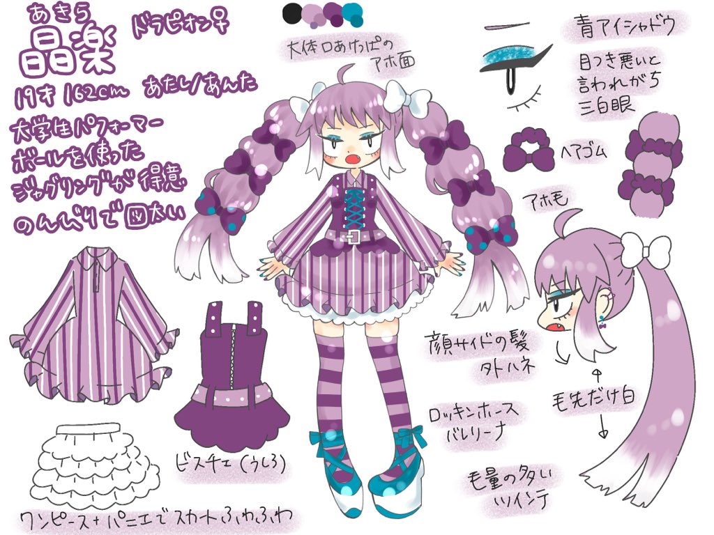パフォーマンス中はキリッとしているが、普段はぼんやり。目つきが悪めだが、よく口が開けっぱなしになっているので、大体あほ面。その顔付きの通り、性格ものんびりで図太い。