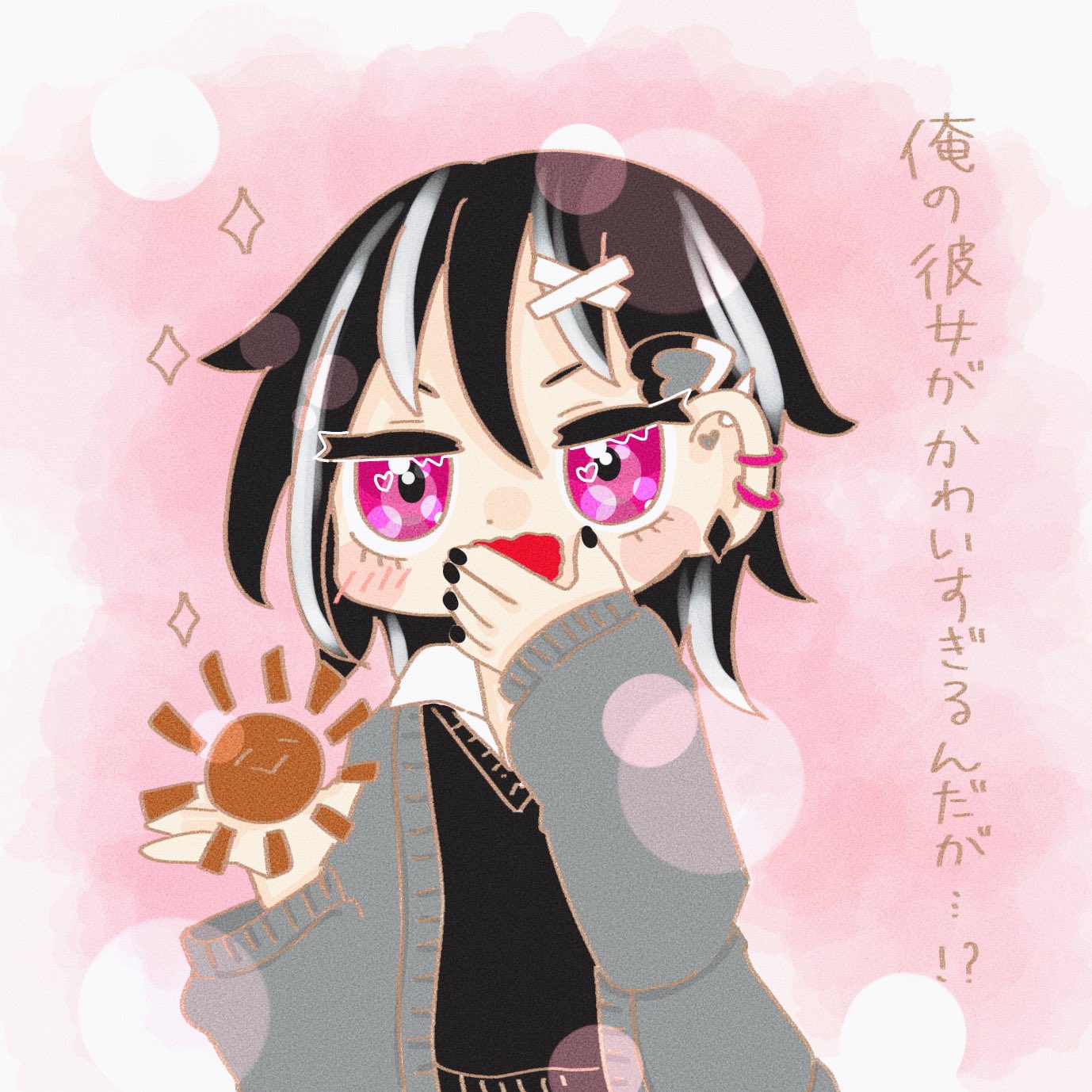 自他共に認めるラブラブカップル。彼女の事を世界で一番可愛いと思っていて、スマホの写真フォルダには夏愛ちゃんの写真やツーショが沢山だし、スマホケースも彼女の目の色のピンク。彼女が大切なので、キス以上には中々踏み込めず、ちょっぴり悶々としているのは内緒。バッテンのヘアピンと黒いネイルはお揃い。