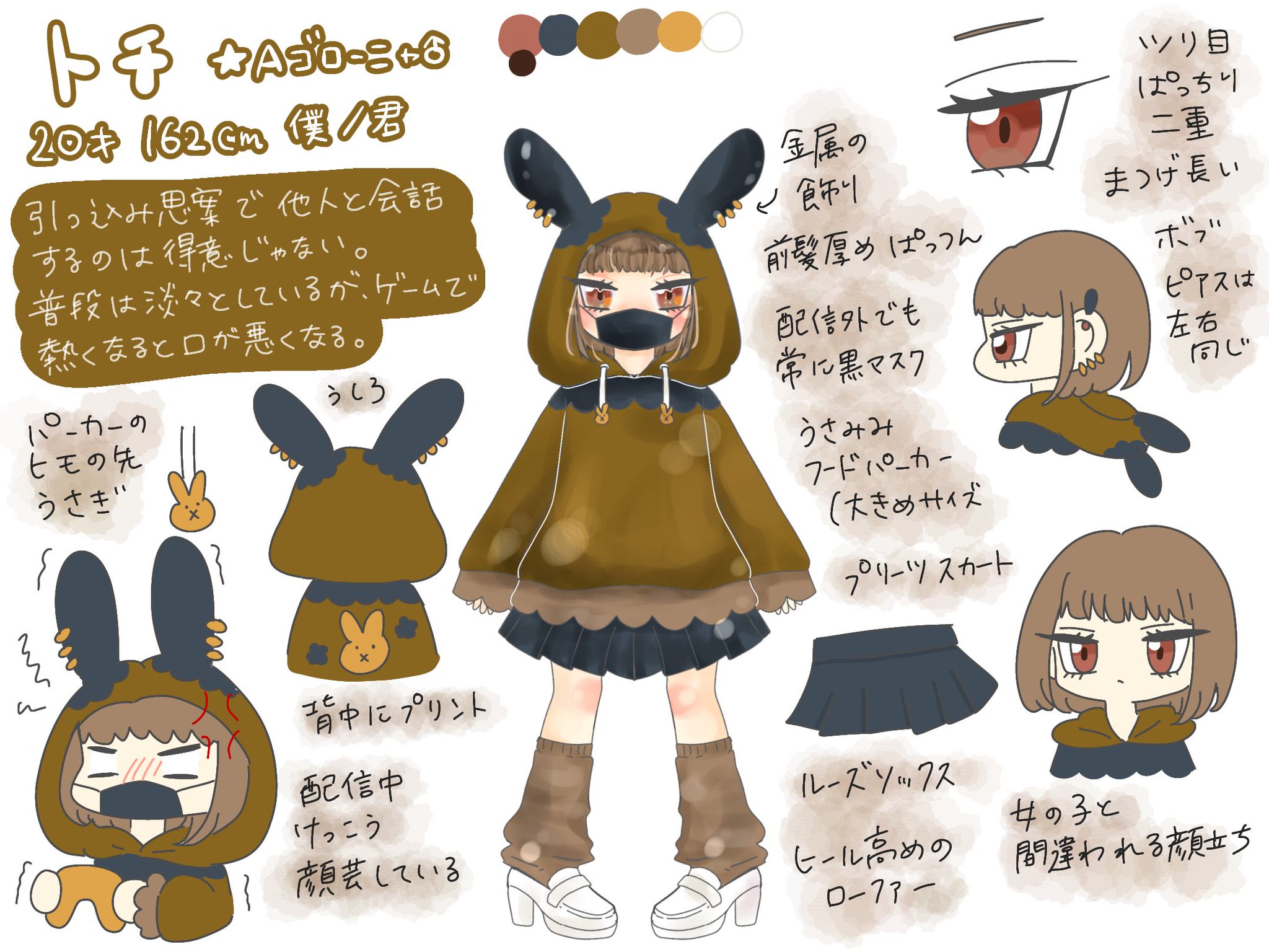 幼馴染のツルバミ(★ギガイアス♂)に、練習がてらメイクとコーディーネートをされ続け、自然と可愛いものが好きになった。元々はその流れで彼のメイク動画に出ていて、視聴者からもっと顔を写して欲しい!とラブコールを受け、自分が好きな事(ゲーム)で動画配信を初めてみた。最初は顔ファンが多かったが、ニッチなゲーム選びセンスやゲームの上手さで徐々にファンを増やしていく。