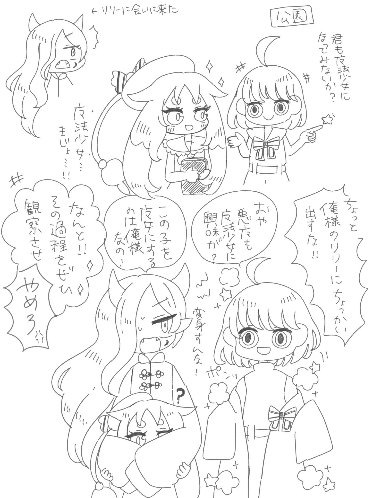 魔法使いではない他人に、自分の魔力を貸与して、どんな反応があるかデータを取っている。その手口はネット上に広告を掲載、内容も「魔法の力でヒーローになってみないか!?」という俗っぽいものだが、思春期の一部少年少女に刺さるらしい。観察対象を便宜上魔法少女と呼ぶ。