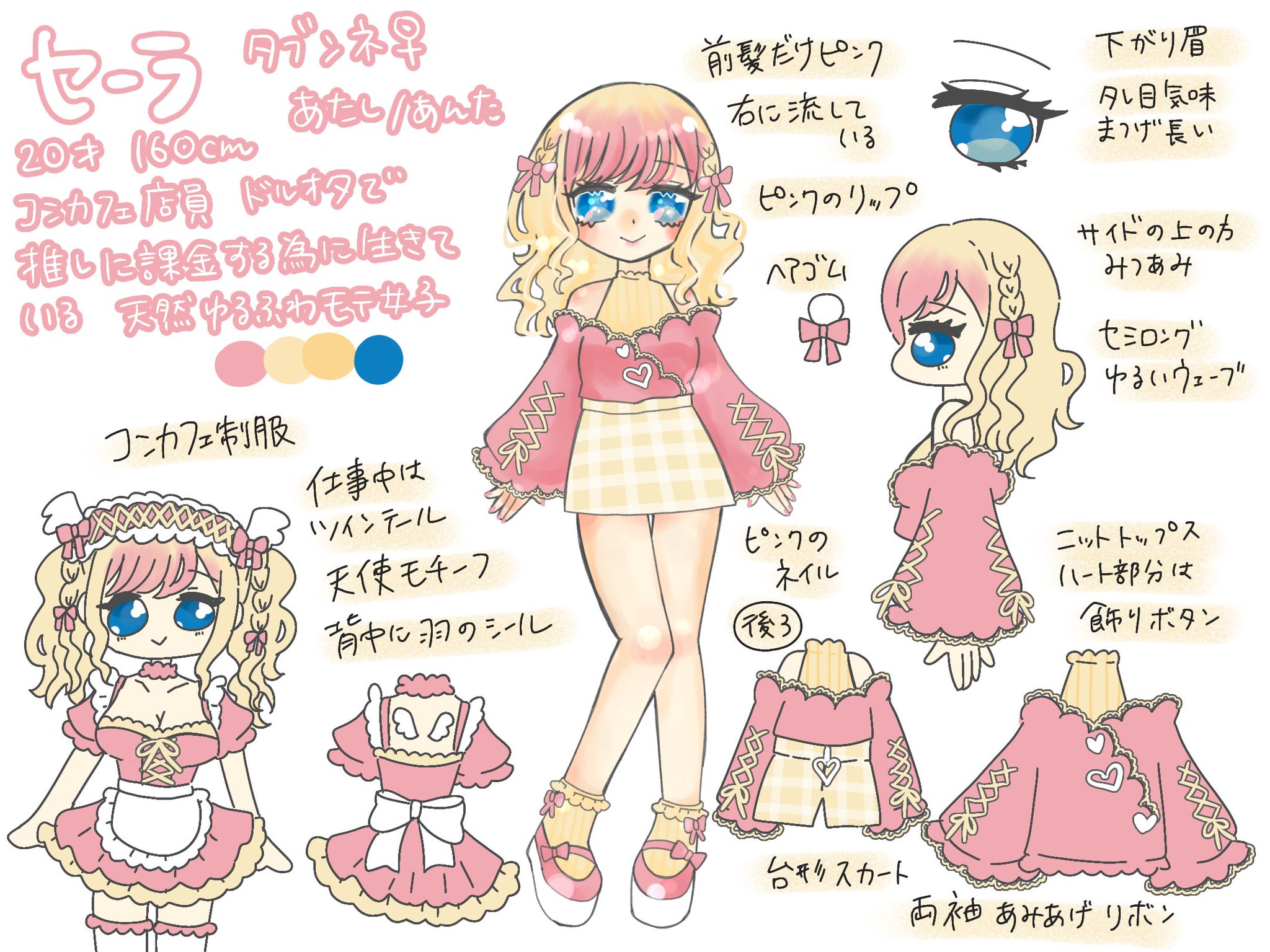 コンカフェ店員。二次元含むドルオタで、公式が出したグッズを大量に買って祭壇を作るタイプのオタク。推しのSNSはしっかりチェックしこまめにリプを送りタグも使い、認知されたい気持ち。