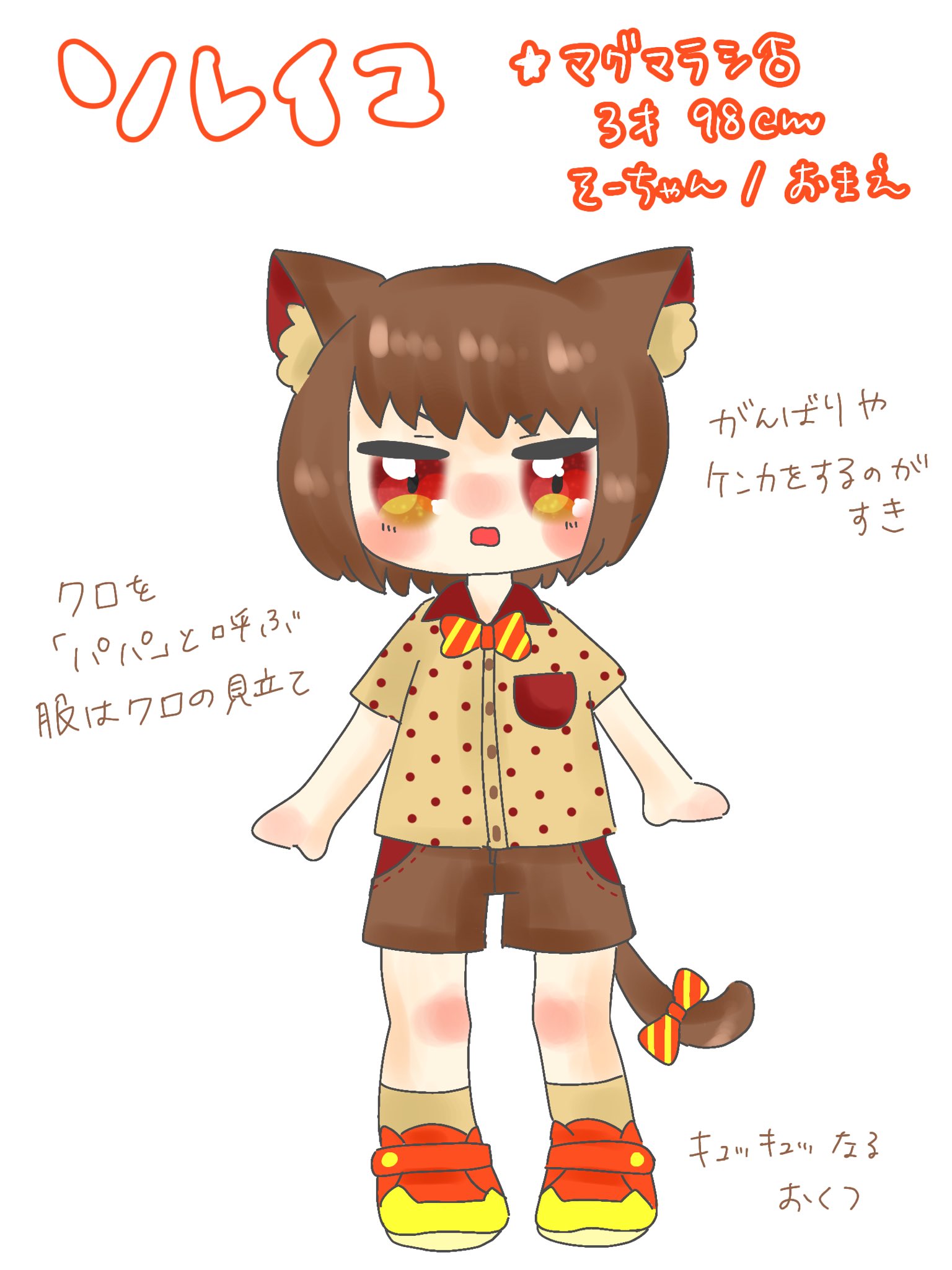 鐵(バクフーン♂)の手で人攫いから買い取られた。物心つかないうちに親から引き離された為、家族も故郷もよくわからない。が、今周りにいるみんなが優しいので、この環境に満足している。鐵をパパと呼んでは睨まれるが気にしない。物怖じしない性格が似ているアメリ(ハネッコ♀)からは、弟のように可愛がられている。