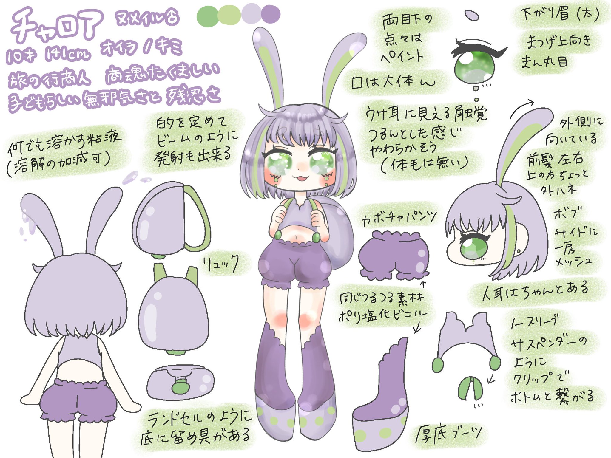 ウサ耳のように見える部分は触覚で、ここから何でも溶かす粘液を出す。的を定めてビームのように発射する事も可能で、溶解の加減もできる。子供らしい無邪気さと残忍さで、自分の冒険の邪魔には容赦なく攻撃している。