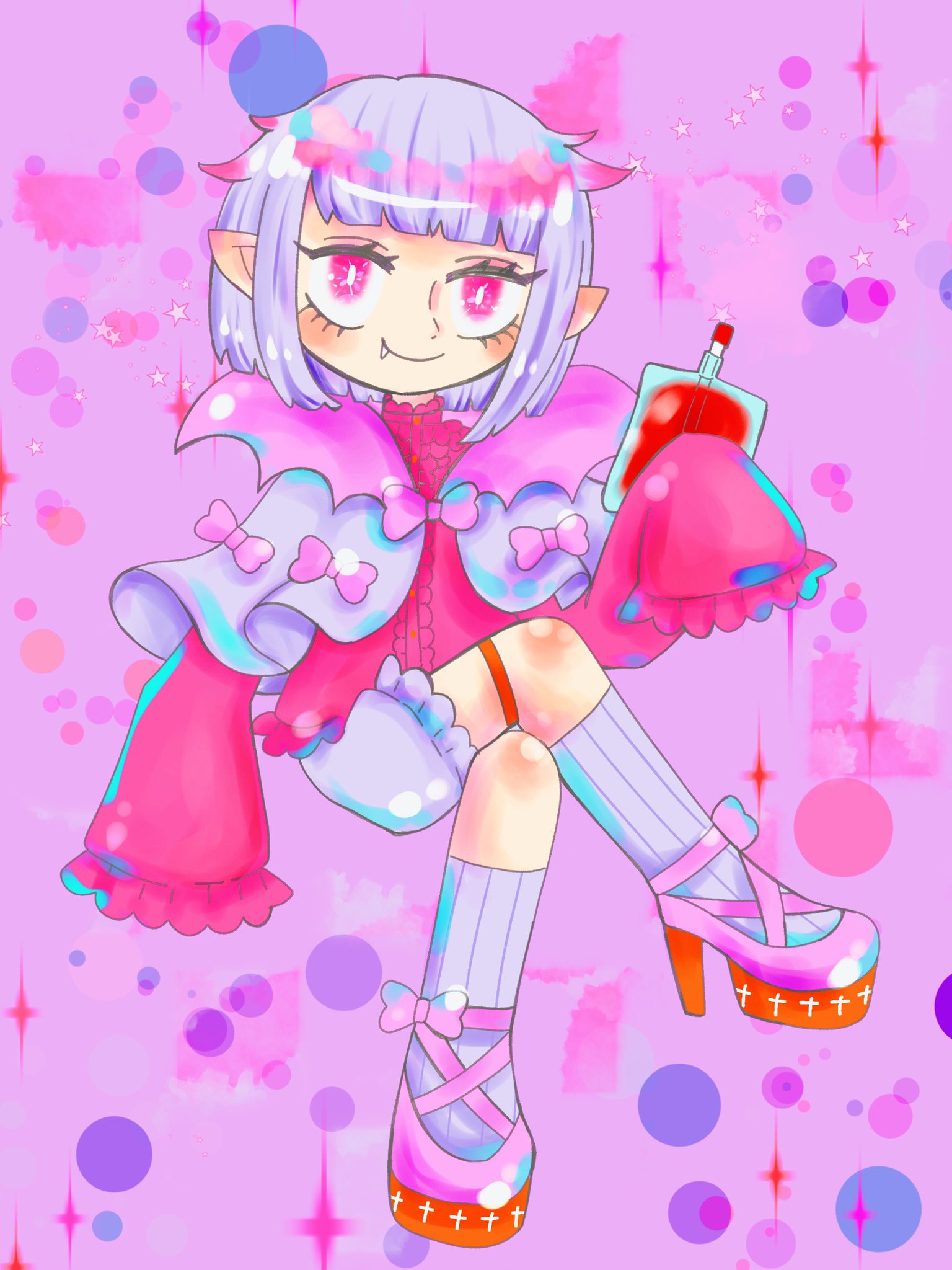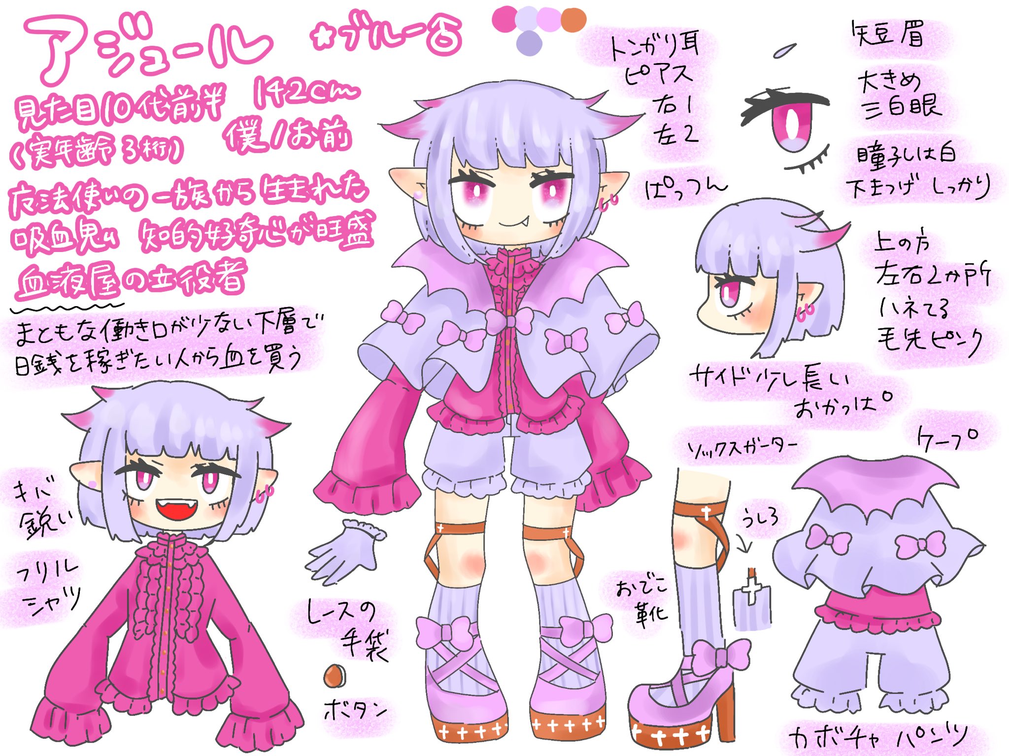 吸血鬼の血が濃く、食事はとれるが主食は血液。日光に当たると火傷のようになってしまう為、日中の外出は日焼け止めや日傘などの対策が必要。