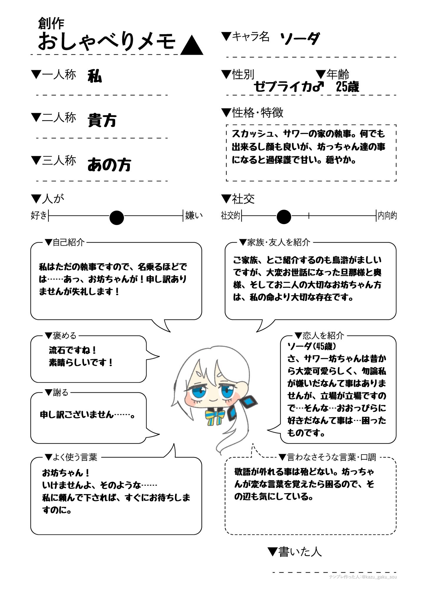 ソーダは手塩にかけて育てた主人(兄の方)がどこぞの馬の骨に恋している事が不満で心配、そして寂しさを感じており、「僕はどこにも行かないよ」というサワーの言葉に心が揺れ動いている。が、主人かつ未成年相手に手を出す事はない。自分からは。