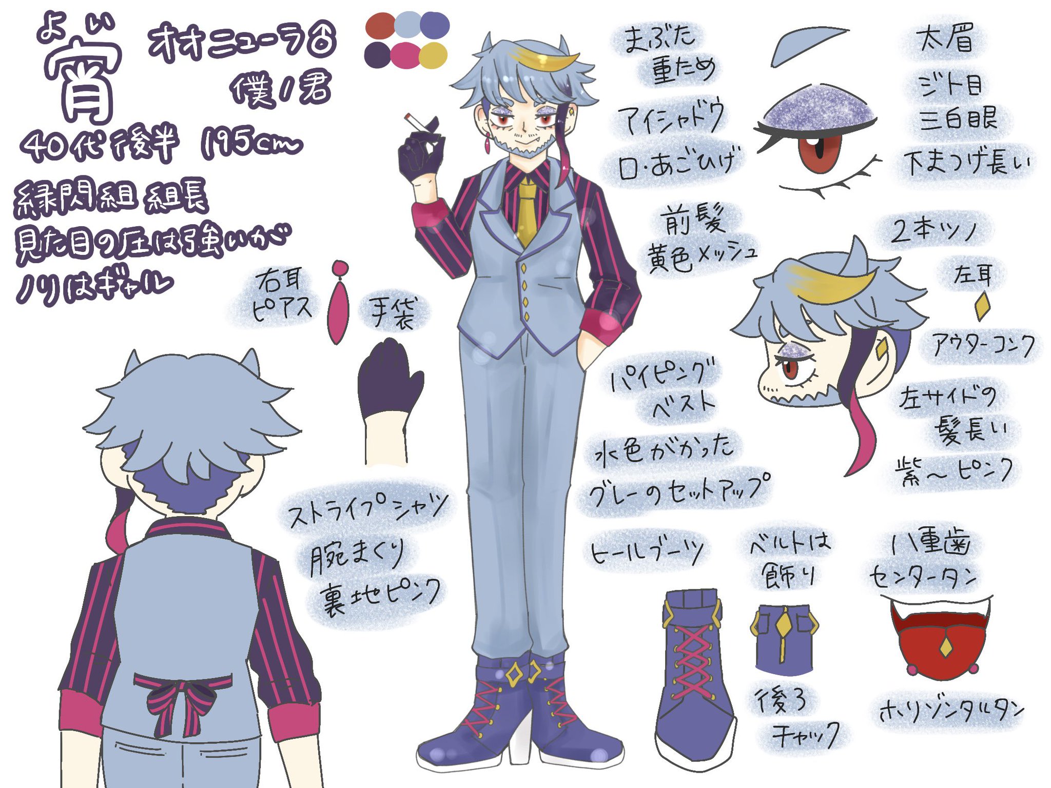 細身だが上背があり、対面すると圧が強い。その風体と立場から近寄り難く見えて、実際のところは柔和でノリがギャル。常に笑みを浮かべているのは、無駄に敵を作らないように。天然ではなく打算でキャラを作っているが、本来の気質も穏やかなもので、人当たりの良さは宵元々のもの。