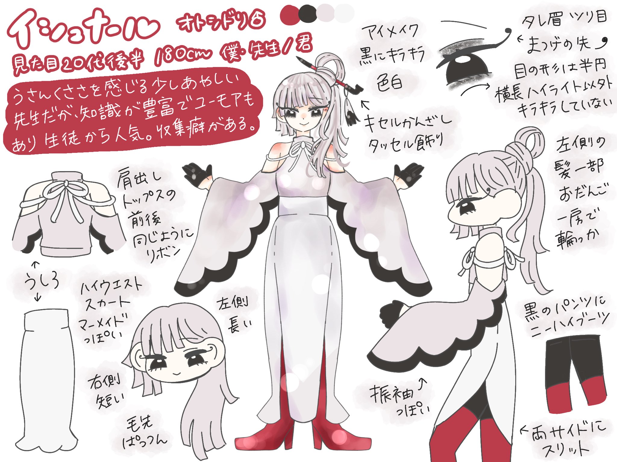 珍しい物好きで収集癖があり、昔はその対象に人も含まれていた。今は綺麗な石ころを磨いたり、四葉のクローバーを押し花にしたり、童心に帰って無害な人のように振る舞っている。たまに欲求が抑えきれなくなり、気に入った人を死ぬほど甘やかして自分に依存させ、精神的に縛り付ける事がある。