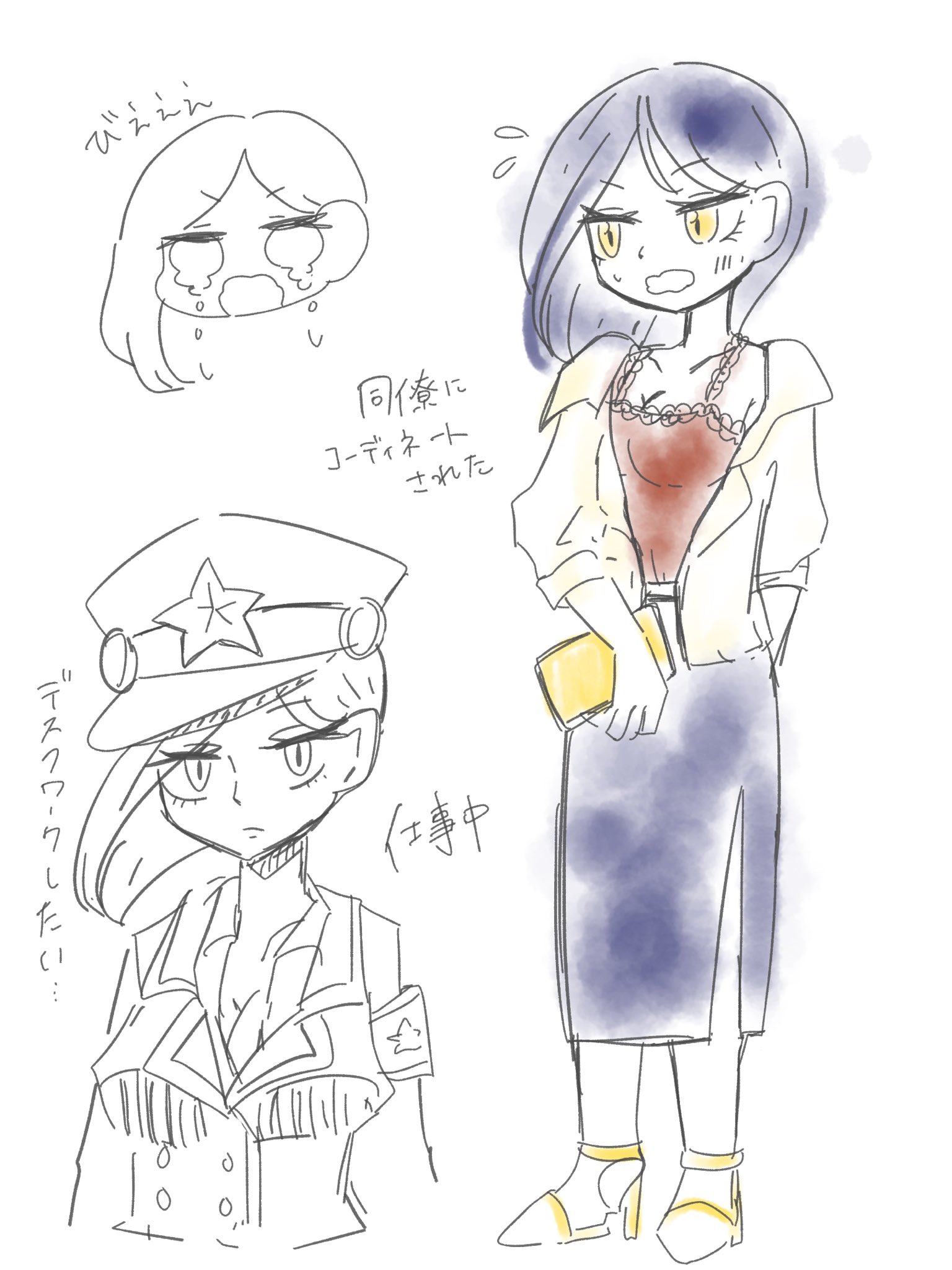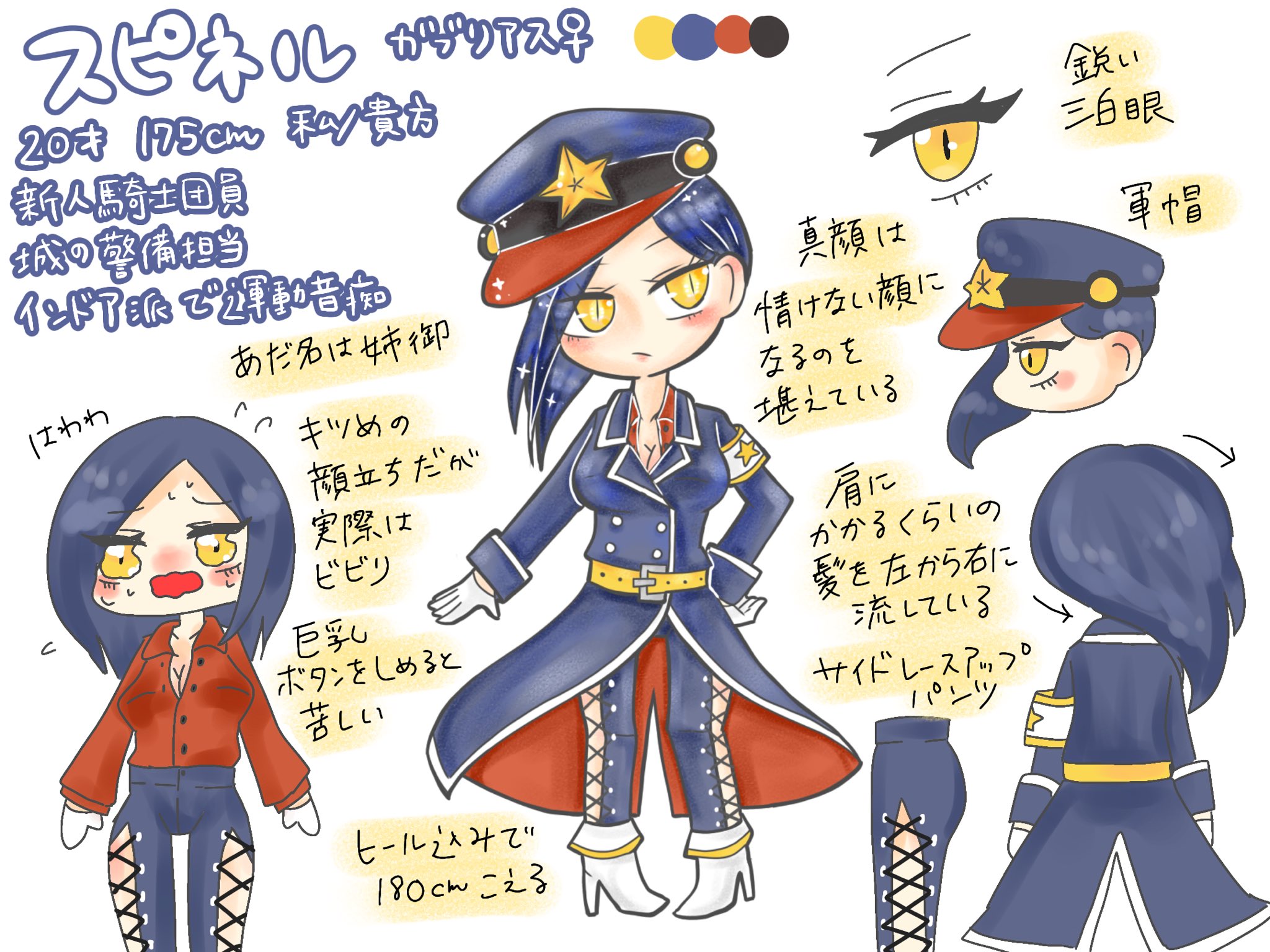 キツめの顔立ちで一見怖そうだが、実際は臆病。何もないところでよく転ぶ。真顔は情けない顔になるのを堪えるため。