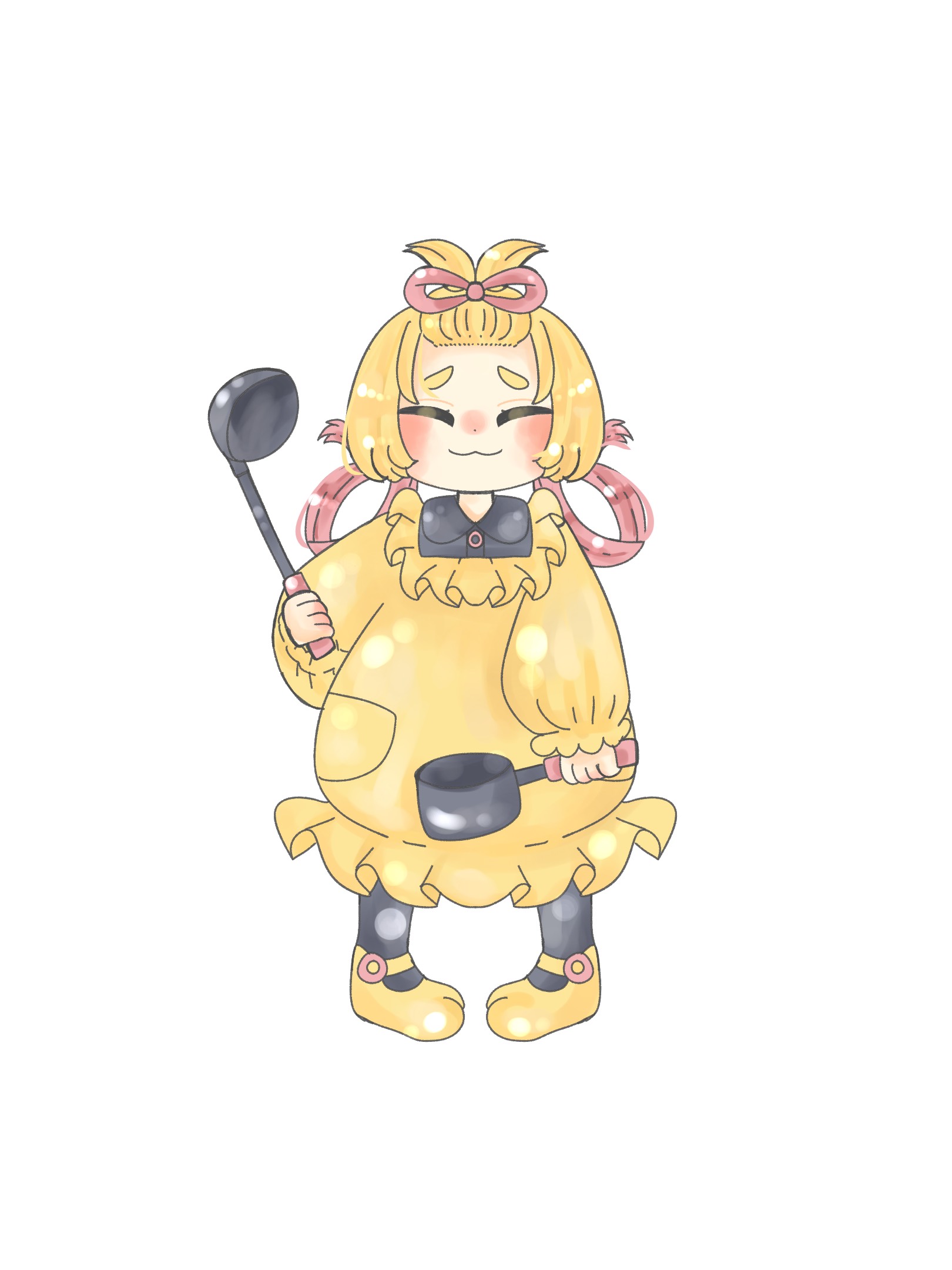 屋敷ではキッチンの仕事を手伝っていたので、料理が得意。常に持ち歩いているおたまと小鍋は、料理用ではなく武器。