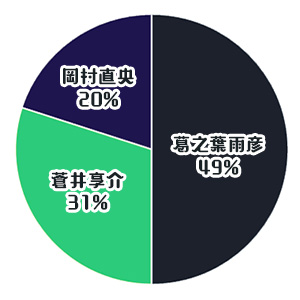 雨彦が頭1つ抜きんでて、という感じになりました。